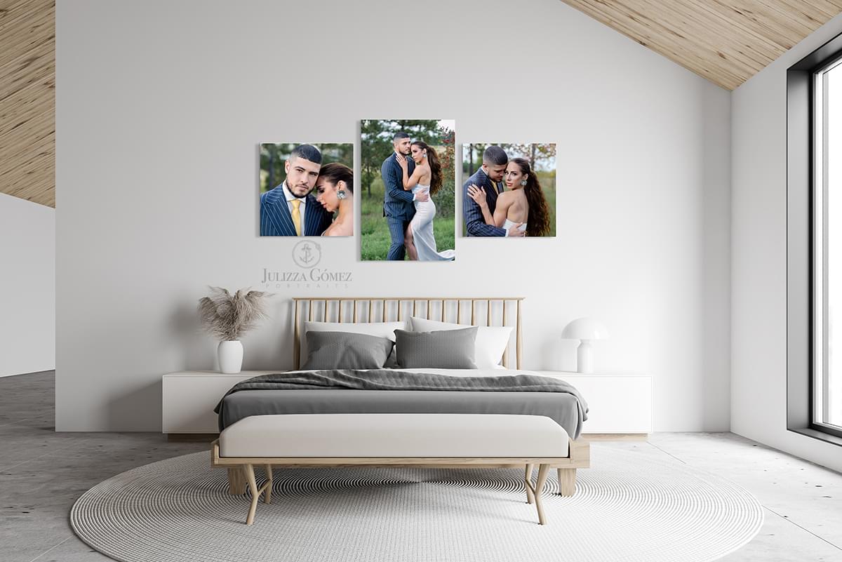 Many times, we celebrate our love as a couple with portraits at the very beginning, then at the wedding, and then not again until the 50th wedding anniversary. Where is all the in-between? Sure, there will be plenty of selfies and cell phone shots, but what about actual PORTRAITS? Why not make it a gift to each other, why not make it a day date, with dinner afterward? Why not celebrate with portraits DURING your life too? With the divorce rate so high, I thought that a beautiful triptych-an art installation in the bedroom-of you and your loved one would be an excellent way to remember why you fell in love in the first place. I thought it would be an incredible way to get through some of the hard times. Where do the arguments and makeups occur? In the bedroom. When are you alone with your thoughts? In your bedroom. Looking up, walking by, and being reminded of your love for each other seems to me that it would be a magical way of honoring and strengthening your bond. At Julizza Gomez Portraits, we are ready and equipped to not only create a magical experience  that will bring you closer together, but we can also make beautiful prints that will LAST the duration of your life. Are YOU ready?